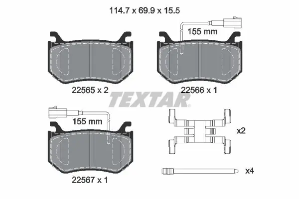 Zestaw klocków hamulcowych, hamulce tarczowe TEXTAR 2256501 2256501/TEX TEXTAR